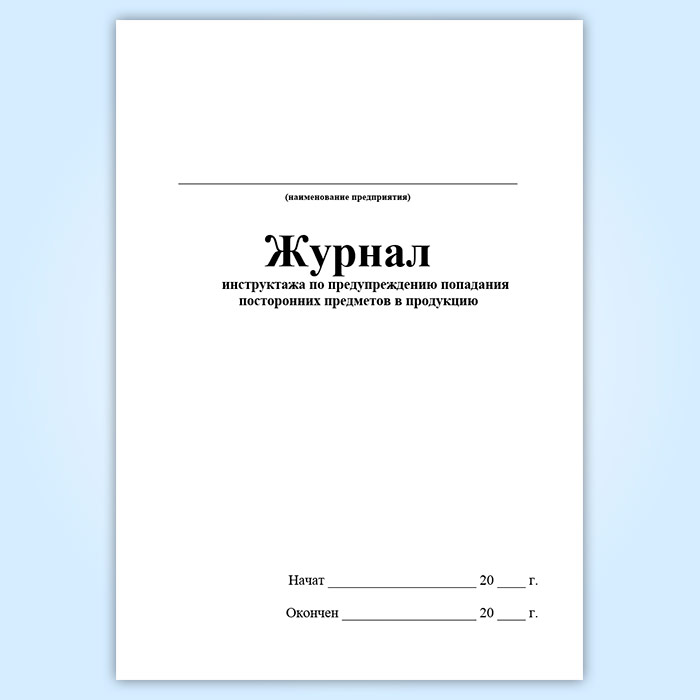 Журнал инструктажа по предупреждению попадания посторонних предметов в продукцию в Великом Новгороде купить