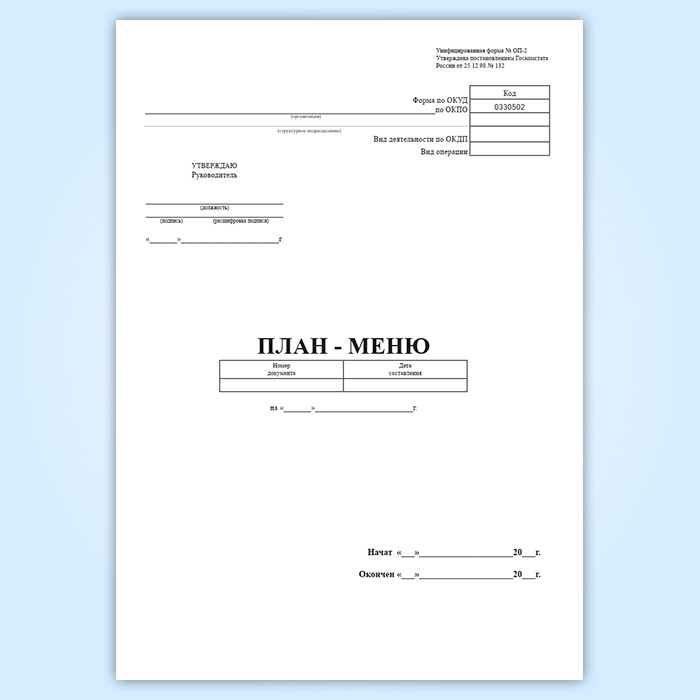 Журнал План-меню (форма ОП-2) в Великом Новгороде купить