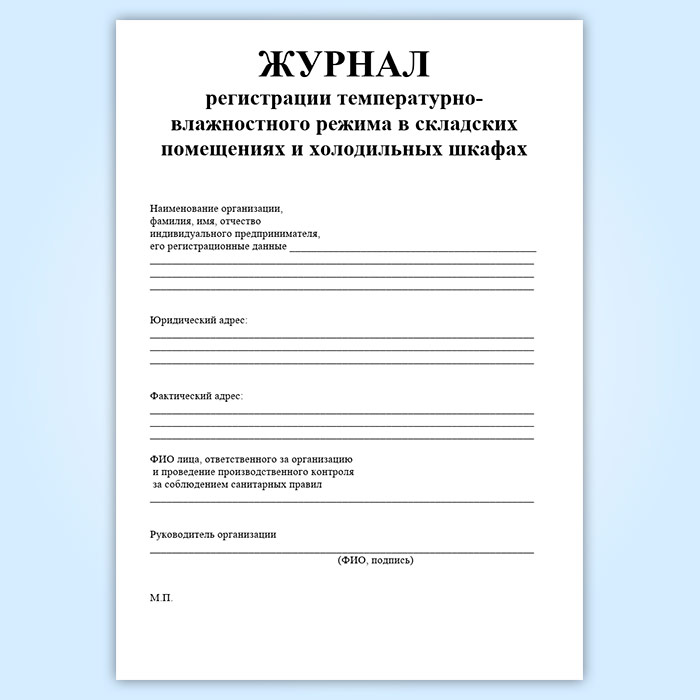 Журнал регистрации температурно-влажностного режима в складских помещениях и холодильных шкафах в Великом Новгороде купить