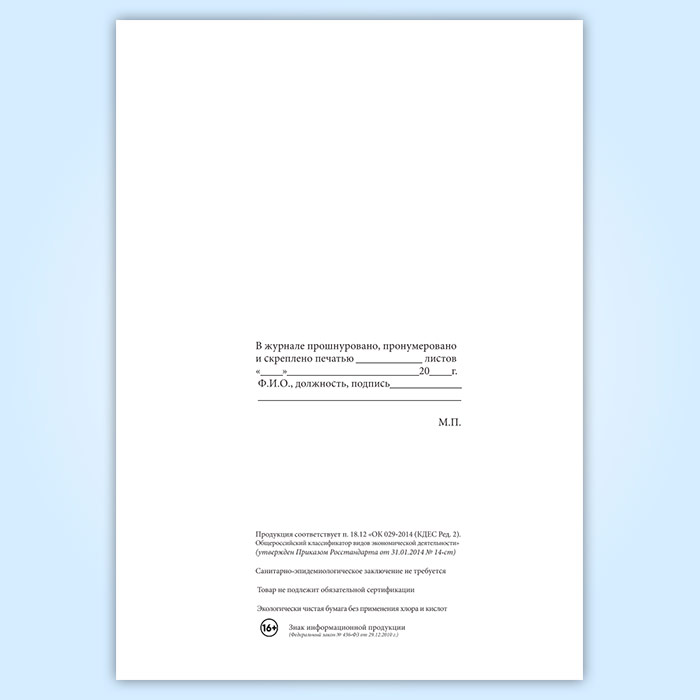 Вы получаете печатную продукцию прошнурованной и c местом для вашей печати в соответствии с действующими нормативными документами: