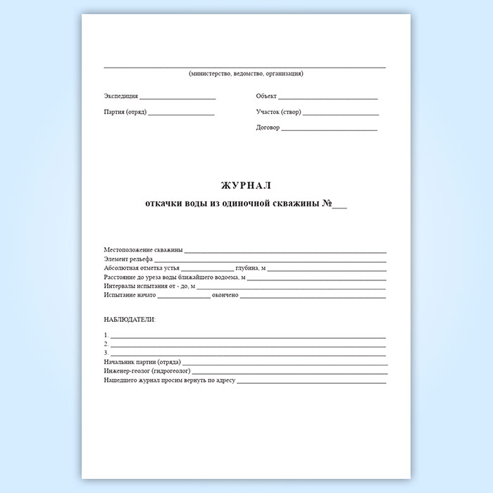 Журнал откачки воды из одиночной скважины (форма УГ-36) в Великом Новгороде купить