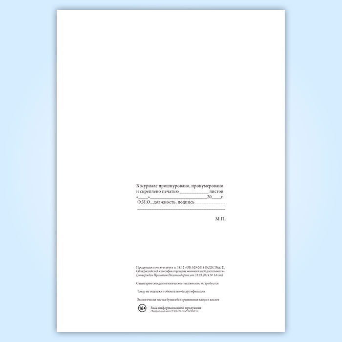 Вы получаете печатную продукцию прошнурованной и c местом для вашей печати в соответствии с действующими нормативными документами:
