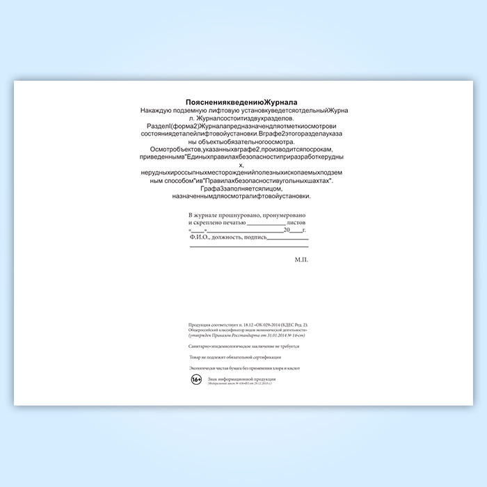 Вы получаете печатную продукцию прошнурованной и c местом для вашей печати в соответствии с действующими нормативными документами: