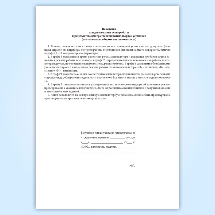 Книга учета работы и результатов осмотра главной вентиляторной установки в Великом Новгороде купить