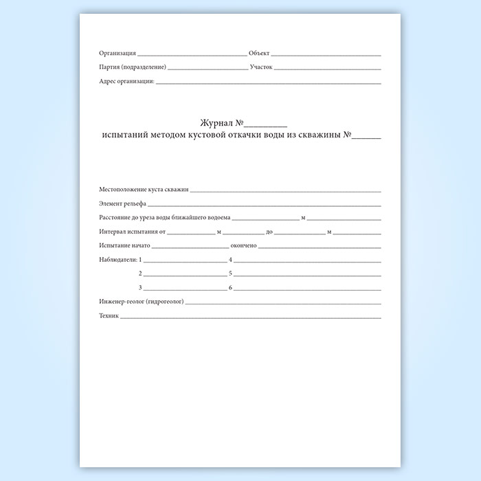 Журнал кустовой откачки из скважины в Великом Новгороде купить