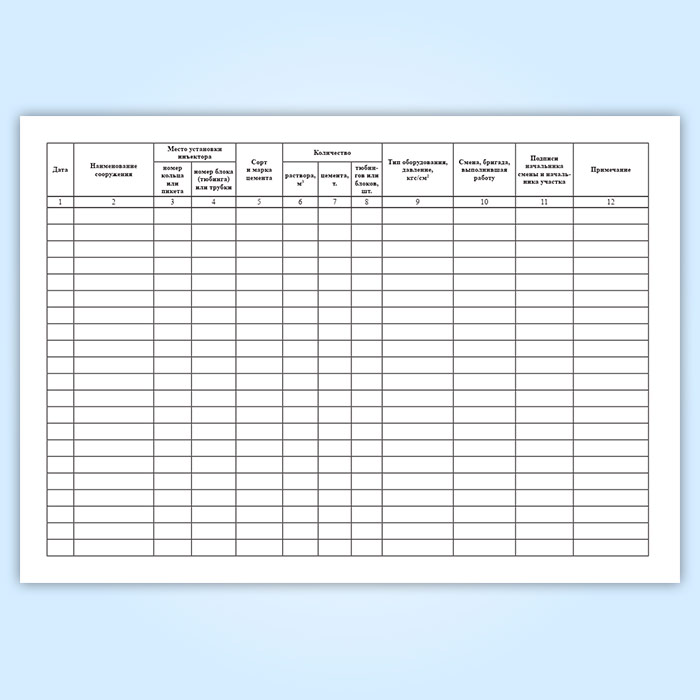 Журнал контрольного нагнетания цемента за обделку в Великом Новгороде купить