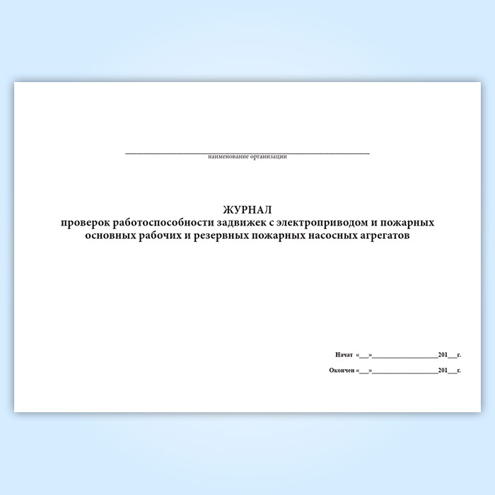 Журнал проверок работоспособности задвижек с электроприводом и пожарных основных рабочих и резервных пожарных насосных агрегатов в Великом Новгороде купить