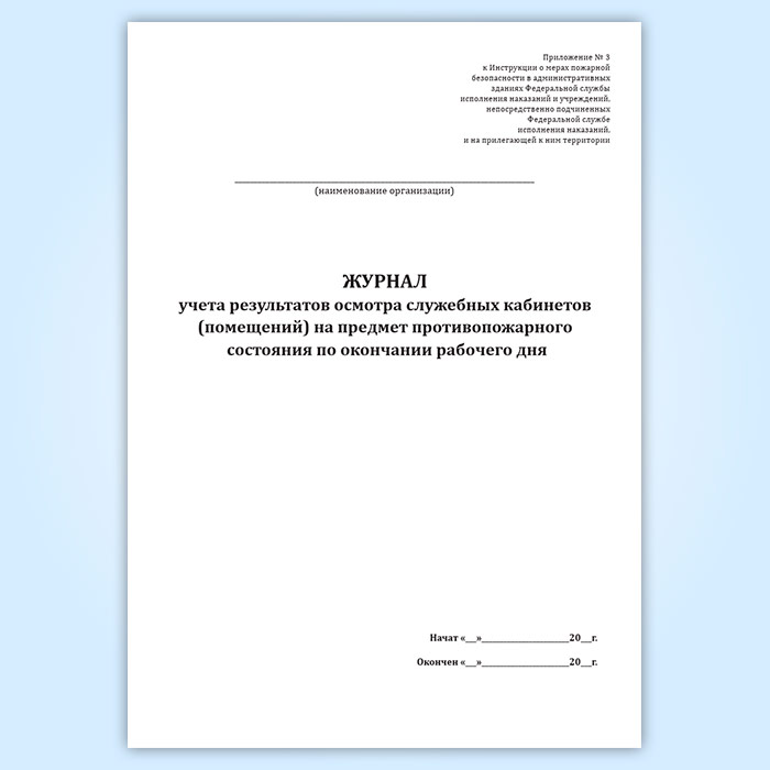 Журнал учета результатов осмотра служебных кабинетов (помещений) на предмет противопожарного состояния по окончании рабочего дня в Великом Новгороде купить