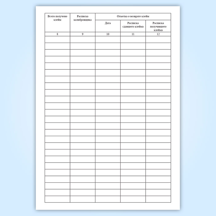 Журнал выдачи и получения калибровочных клейм в Великом Новгороде купить