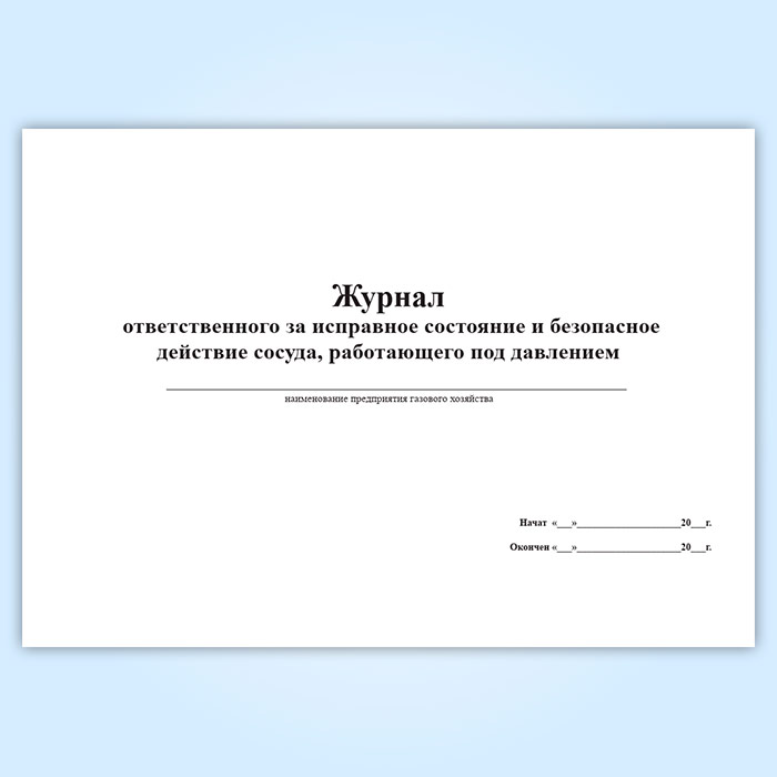 Журнал ответственного за исправное состояние и безопасное действие сосуда, работающего под давлением в Великом Новгороде купить