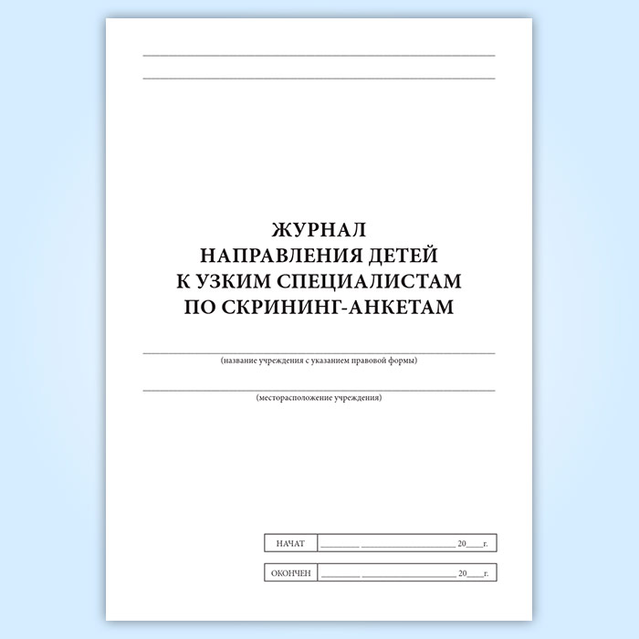 Журнал направления детей к узким специалистам по скрининг-анкетам в Великом Новгороде купить