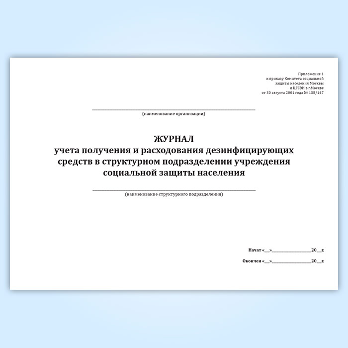 Журнал учета получения и расходования дезинфицирующих средств в структурном подразделении учреждения социальной защиты населения в Великом Новгороде купить