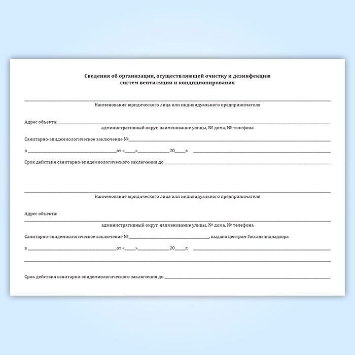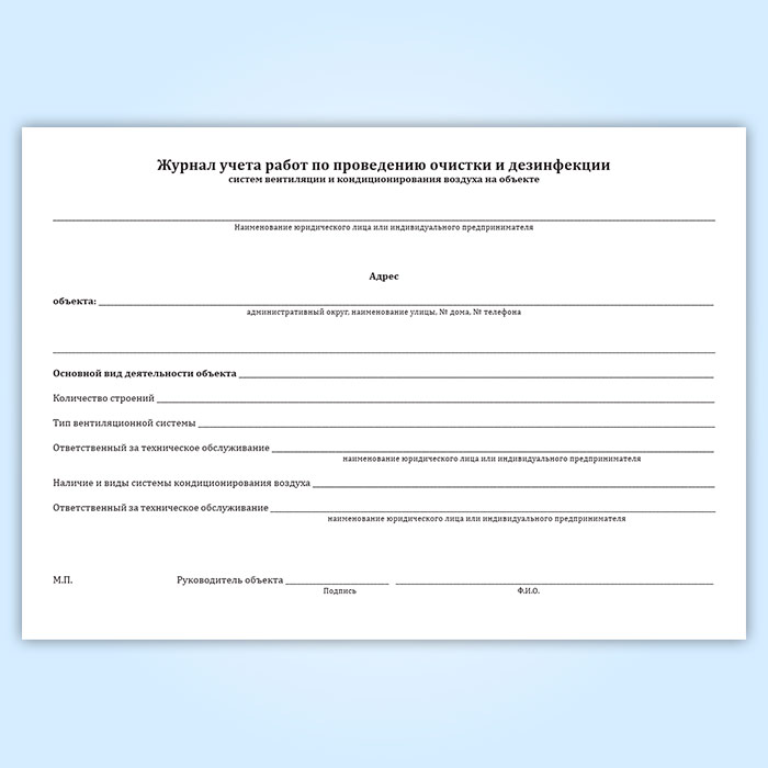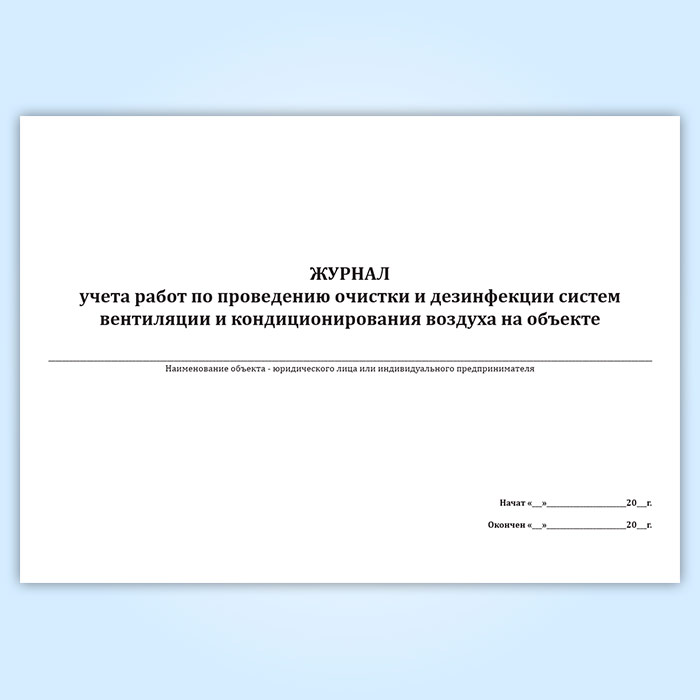 Журнал учета работ по проведению очистки и дезинфекции систем вентиляции и кондиционирования воздуха на объекте в Великом Новгороде купить