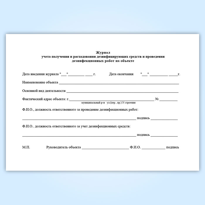 Журнал учета получения и расходования дезинфицирующих средств и проведения дезинфекционных работ на объекте в Великом Новгороде купить