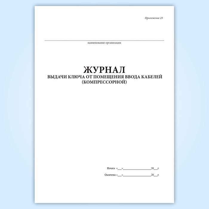 Журнал выдачи ключа от помещения ввода кабелей (компрессорной) в Великом Новгороде купить