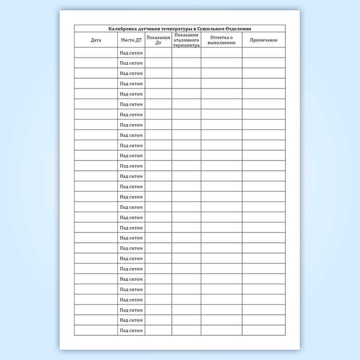 Журнал калибровки датчиков температуры в сушильном отделении в Великом Новгороде купить