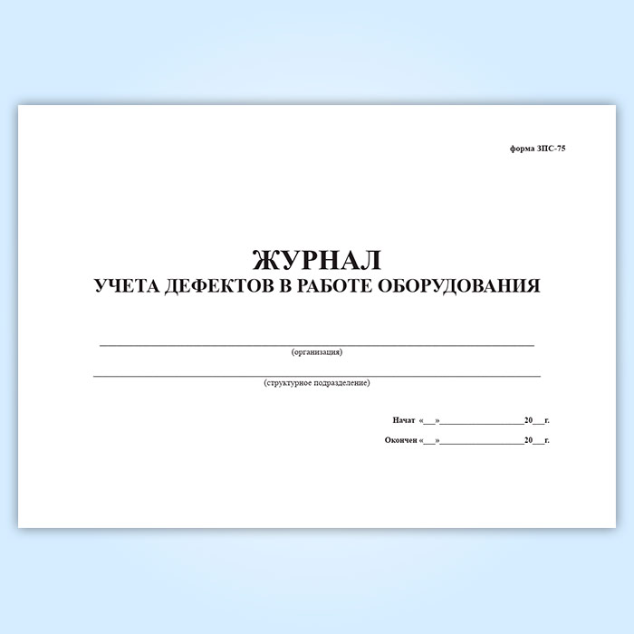 Журнал учета дефектов в работе оборудования (форма ЗПС-75) в Великом Новгороде купить