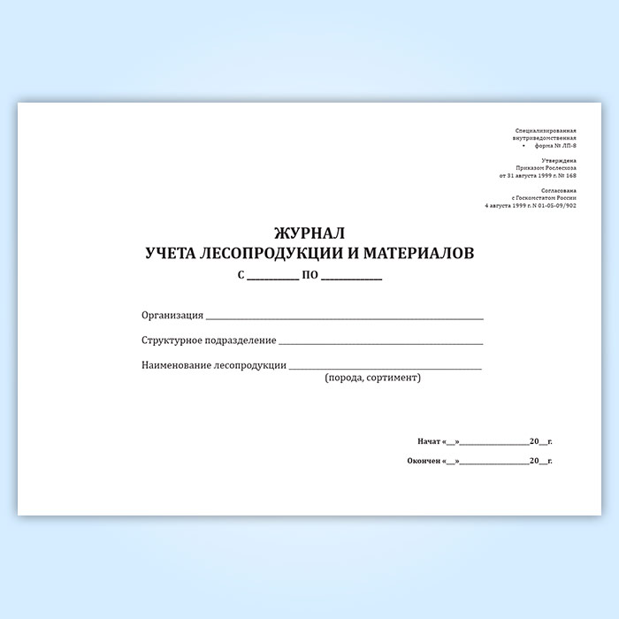 Журнал учета лесопродукции и материалов (форма ЛП-8) в Великом Новгороде купить