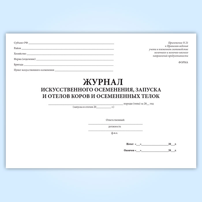 Журнал искусственного осеменения, запуска и отелов коров и осемененных телок в Великом Новгороде купить