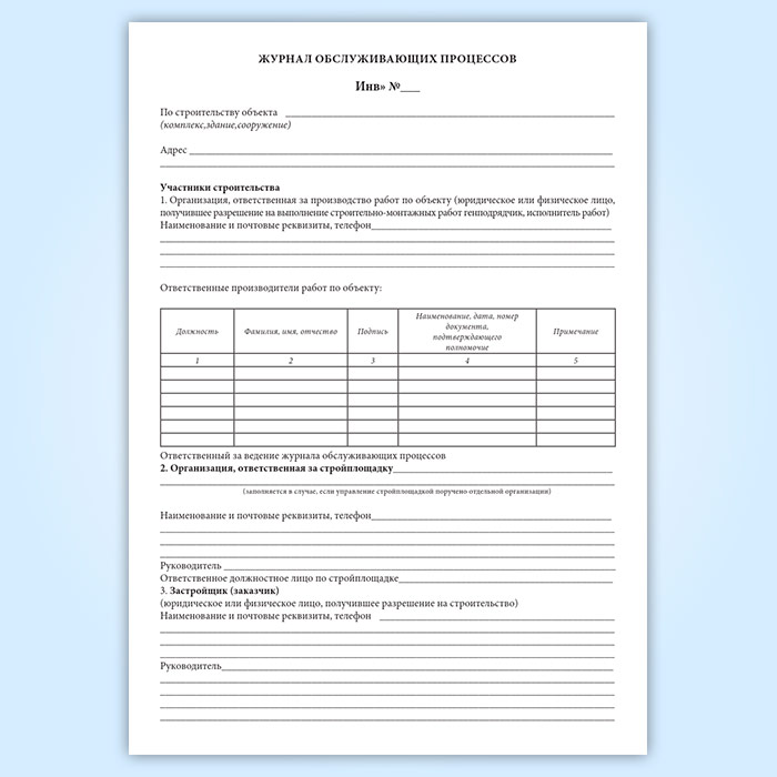 Журнал обслуживающих процессов по объекту в Великом Новгороде купить