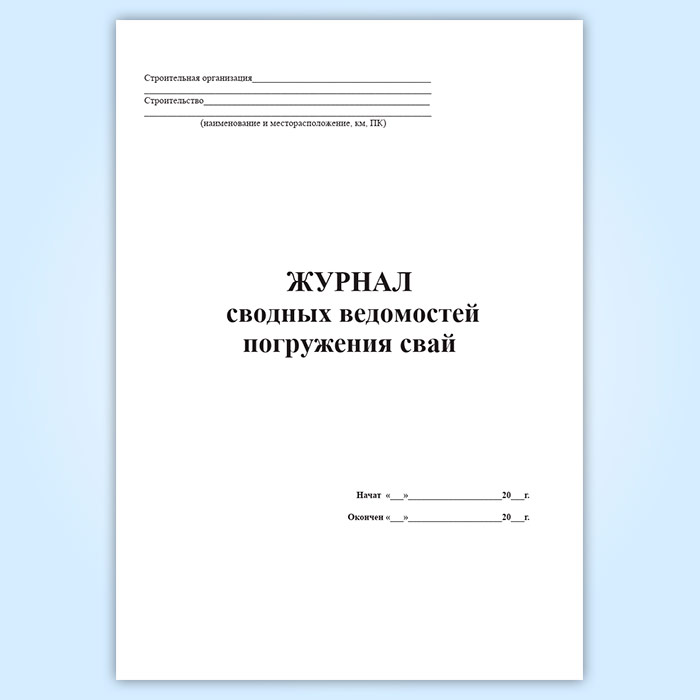 Журнал сводных ведомостей погружения свай в Великом Новгороде купить