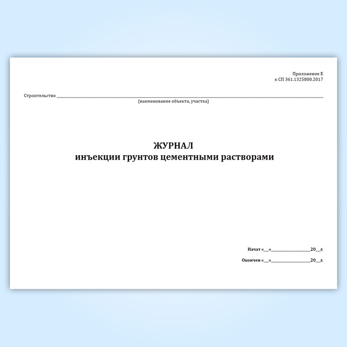 Журнал инъекции грунтов цементными растворами (СП 361.1325800.2017) в Великом Новгороде купить