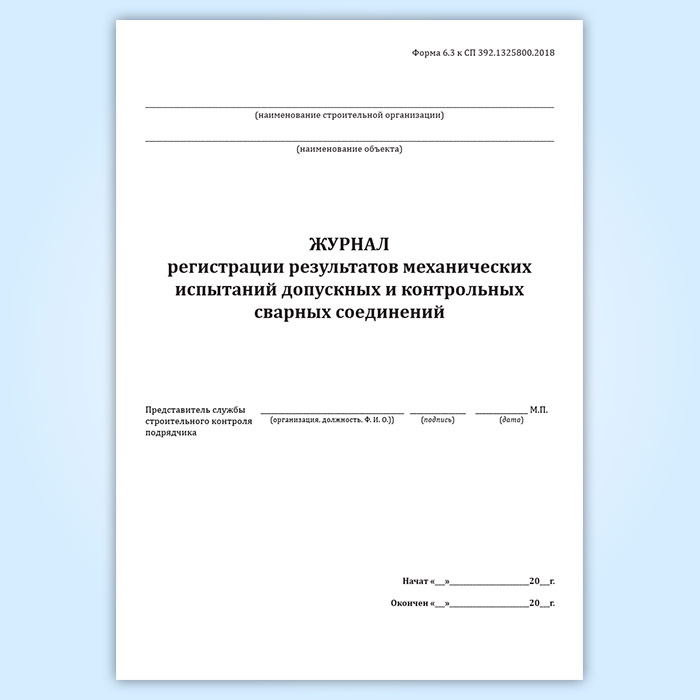 Журнал регистрации результатов механических испытаний допускных и контрольных сварных соединений (форма 6.3) в Великом Новгороде купить