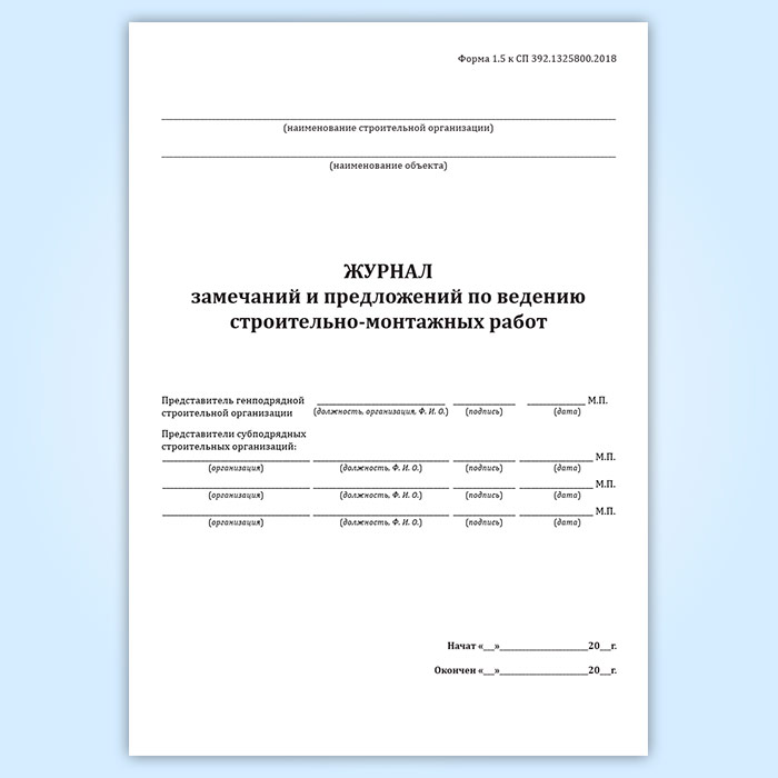 Журнал замечаний и предложений по ведению строительно-монтажных работ (форма 1.5, СП 392.1325800.2018) в Великом Новгороде купить