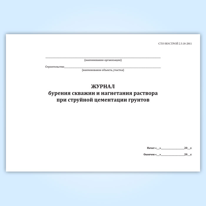 Журнал бурения скважин и нагнетания раствора при струйной цементации грунтов в Великом Новгороде купить