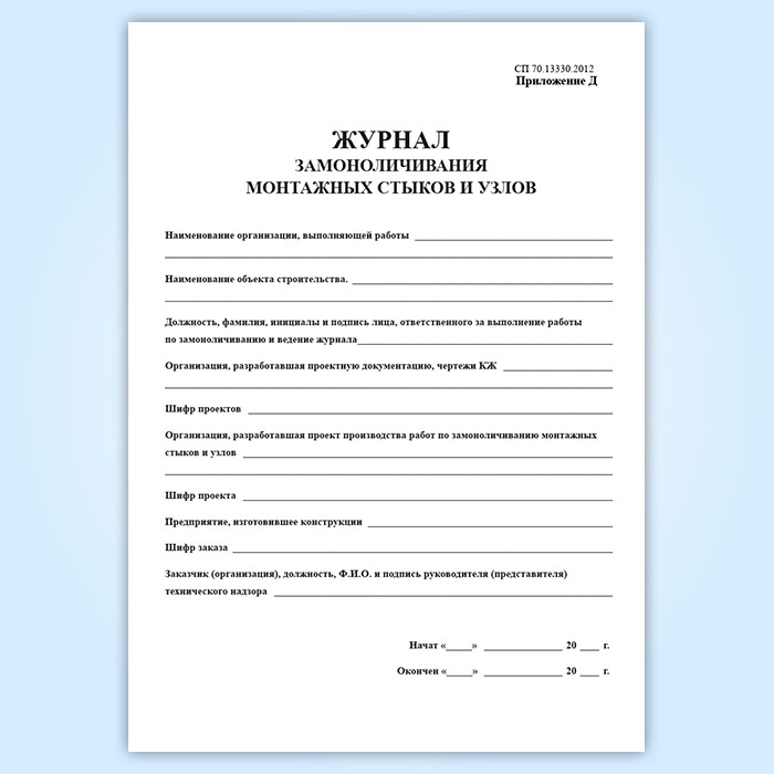 Журнал замоноличивания монтажных стыков и узлов в Великом Новгороде купить