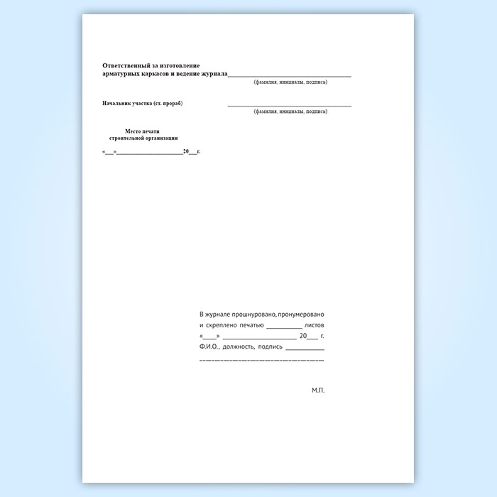 Журнал изготовления арматурных каркасов для бетонирования монолитных и сборных железобетонных конструкций на строительстве в Великом Новгороде купить