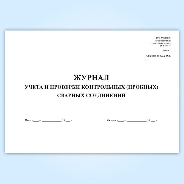 Журнал учета и проверки качества контрольных (пробных) сварных соединений (форма 7) в Великом Новгороде купить
