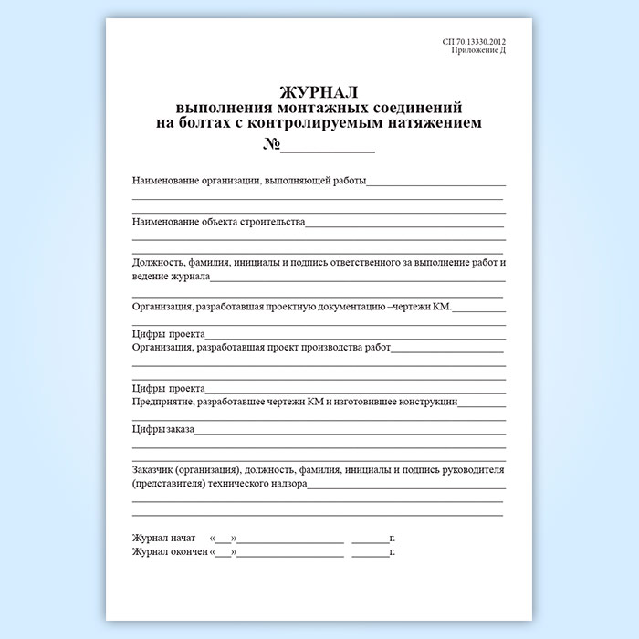 Журнал выполнения монтажных соединений на болтах с контролируемым натяжением в Великом Новгороде купить