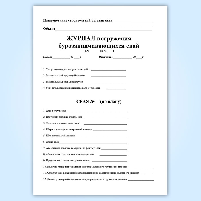 Журнал погружения бурозавинчивающихся свай в Великом Новгороде купить