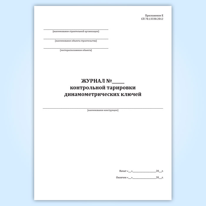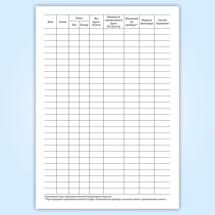 Журнал контрольной тарировки динамометрических ключей в Великом Новгороде купить