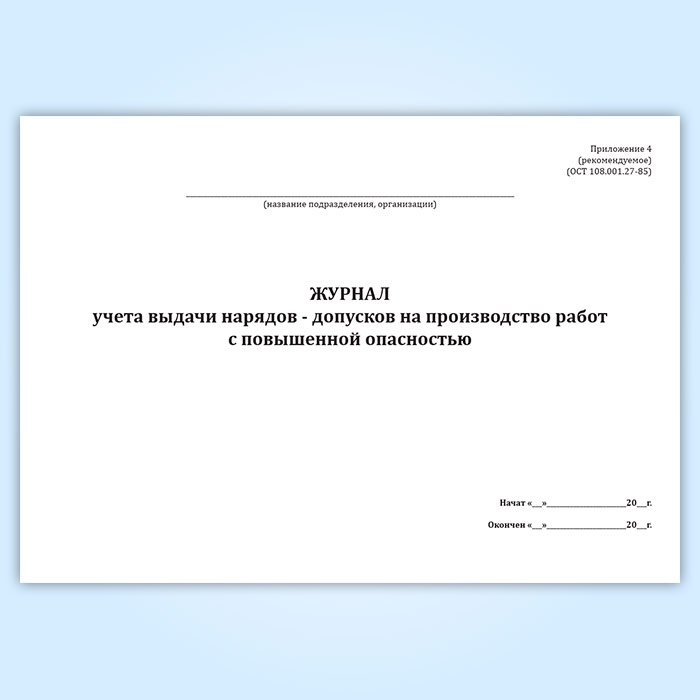 Журнал учета выдачи нарядов-допусков на производство работ с повышенной опасностью в Великом Новгороде купить