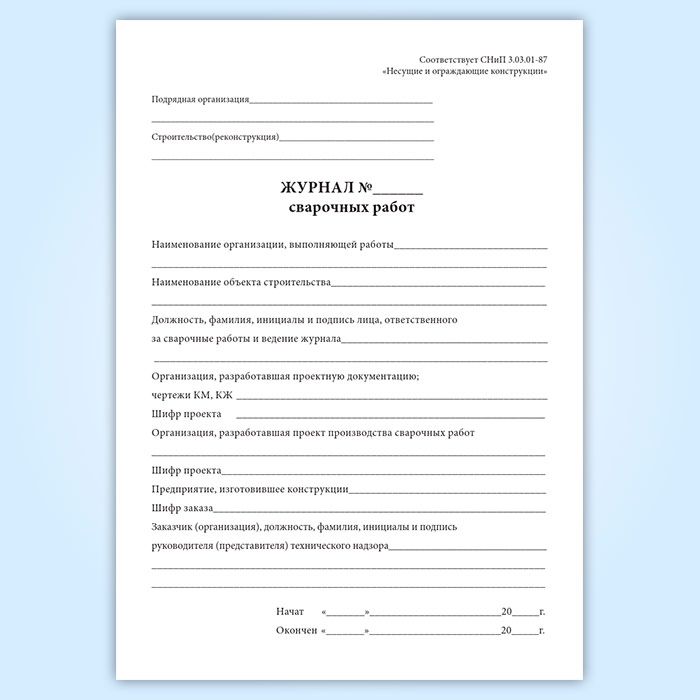 Журнал сварочных работ (СНиП 30301-87) в Великом Новгороде купить