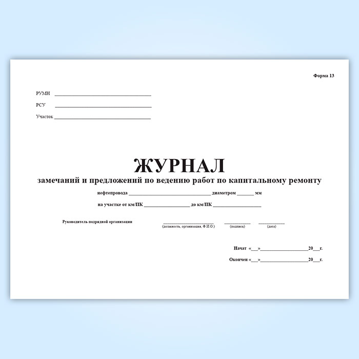 Журнал замечаний и предложений по ведению работ по капитальному ремонту в Великом Новгороде купить