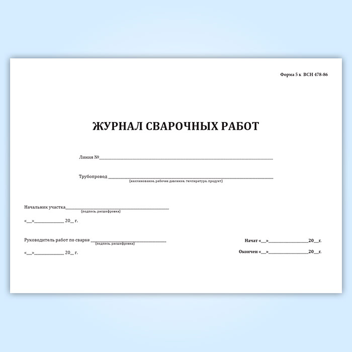 Журнал сварочных работ (ВСН 478-86) в Великом Новгороде купить