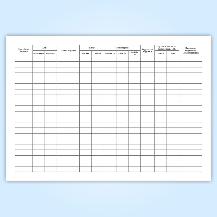 Журнал результатов по определению прочности бетона эталонным молотком Кашкарова в Великом Новгороде купить