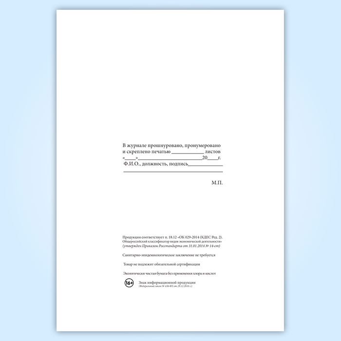 Вы получаете печатную продукцию прошнурованной и c местом для вашей печати в соответствии с действующими нормативными документами: