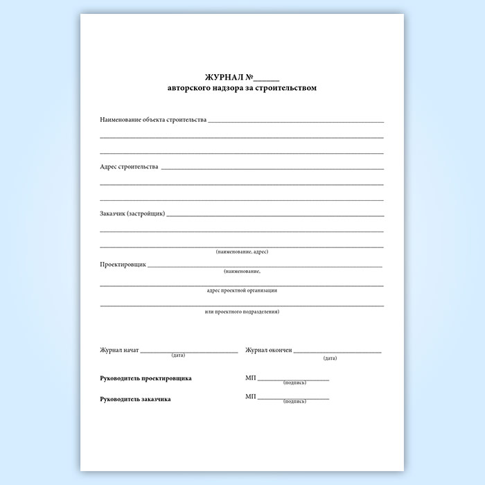 Журнал авторского надзора за строительством (СП 246.1325800.2016) в Великом Новгороде купить