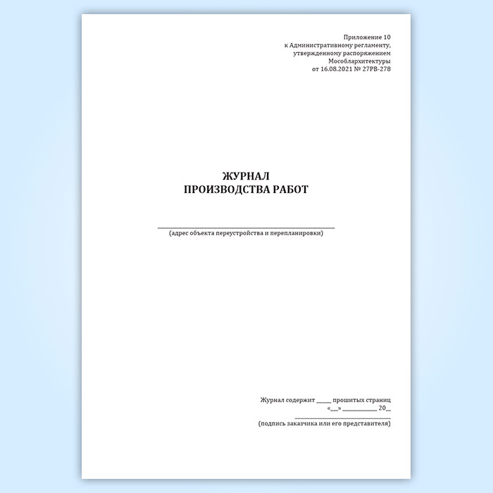 Журнал производства работ (Распоряжение Мособлархитектуры МО от 16.08.2021 N 27РВ-278) в Великом Новгороде купить