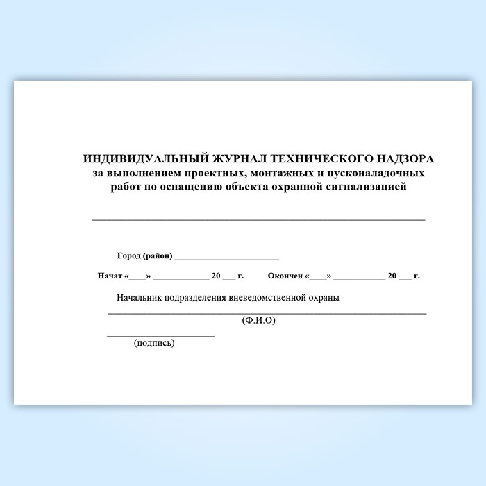 Индивидуальный журнал технического надзора за выполнением проектных, монтажных и пусконаладочных работ по оснащению объекта охранной сигнализацией в Великом Новгороде купить