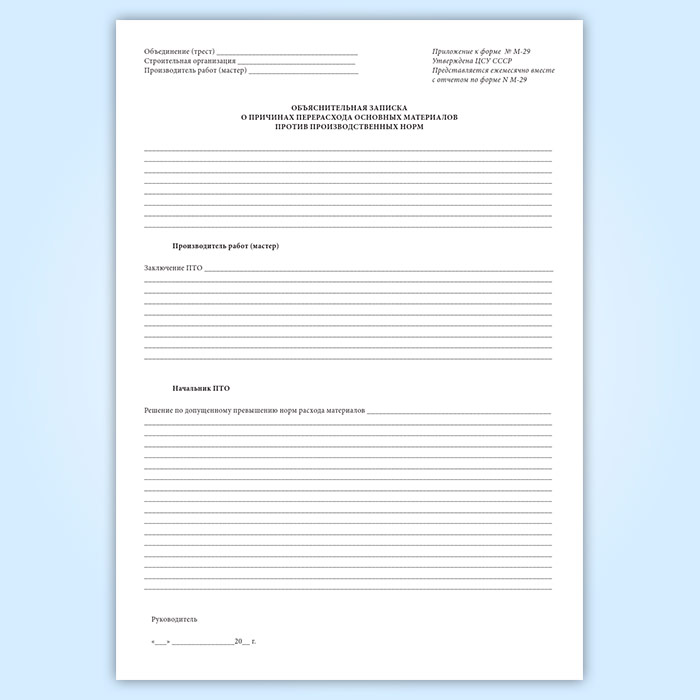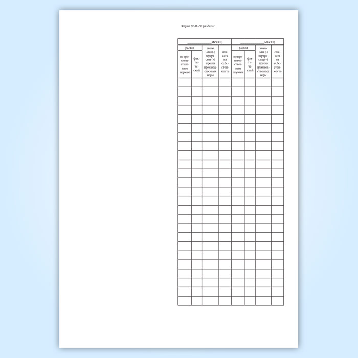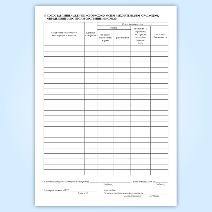 Отчет о расходе основных материалов в строительстве в сопоставлении с расходом, определенным по производственным нормам (форма М-29) в Великом Новгороде купить