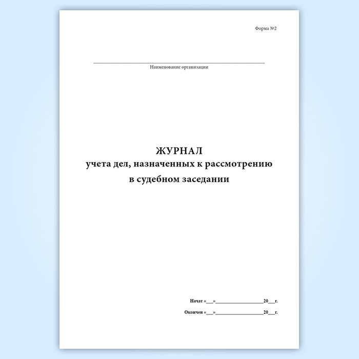 Журнал учета дел, назначенных к рассмотрению в судебном заседании (форма № 2) в Великом Новгороде купить