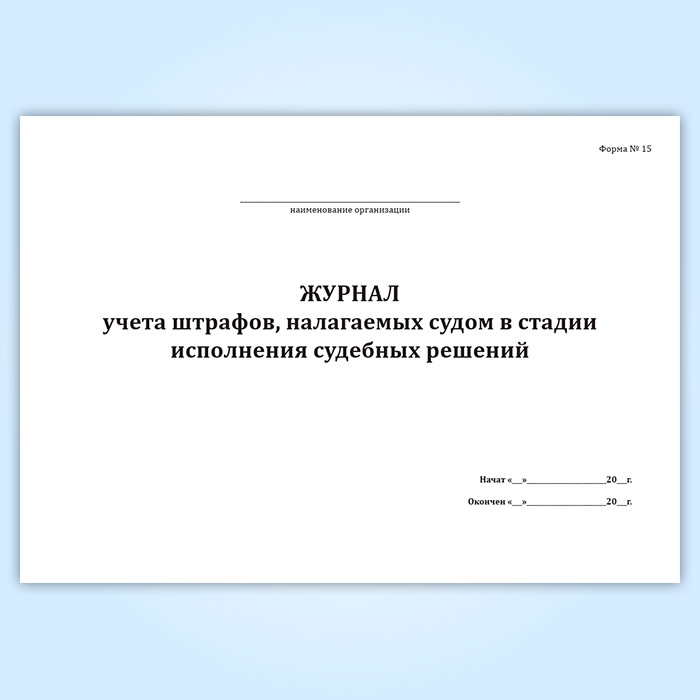 Журнал учета штрафов, налагаемых судом в стадии исполнения судебных решений (форма № 15) в Великом Новгороде купить