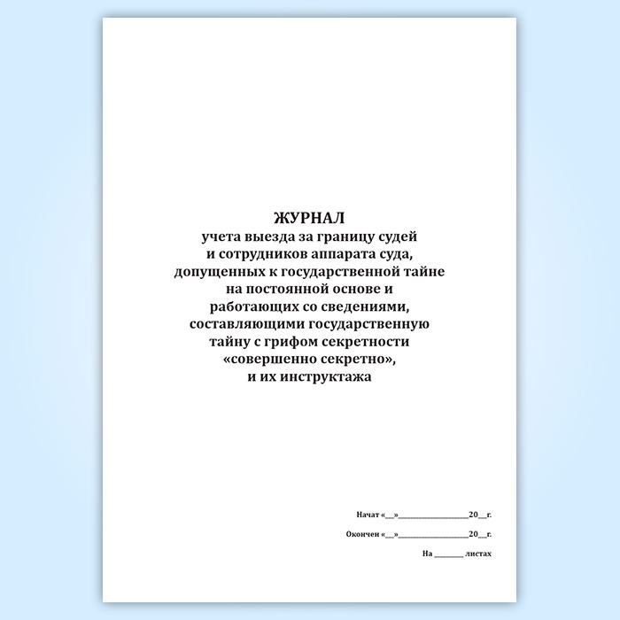 Журнал учета выезда за границу судей и сотрудников аппарата суда, допущенных к государственной тайне на постоянной основе и работающих со сведениями, составляющими государственную тайну с грифом секретности «совершенно секретно», и их инструктажа в Великом Новгороде купить