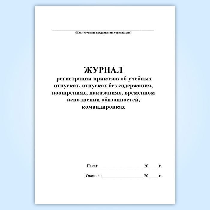 Журнал регистрации приказов об учебных отпусках, отпусках без содержания, поощрениях, наказаниях, временном исполнении обязанностей, командировках в Великом Новгороде купить