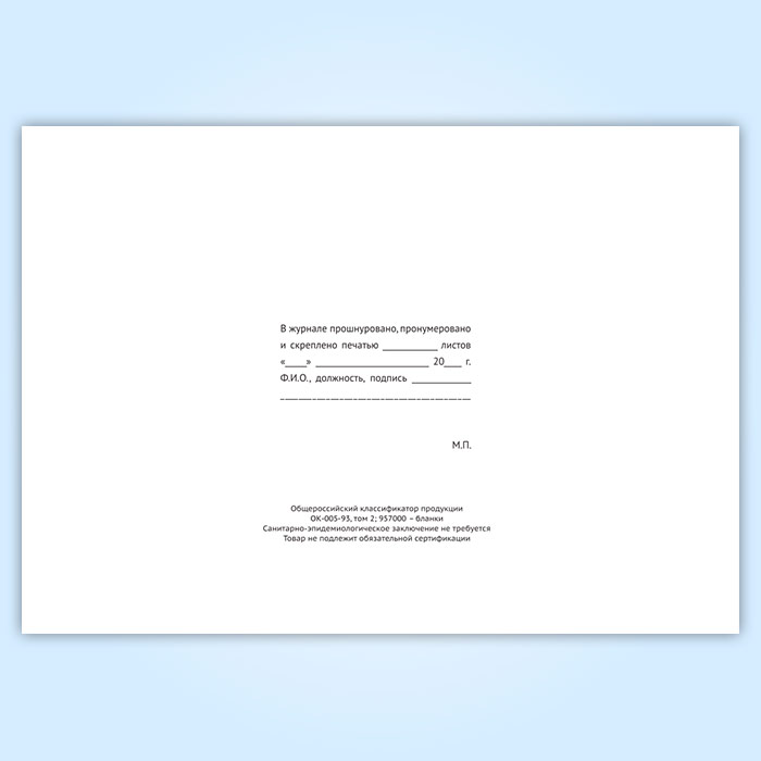 Вы получаете печатную продукцию прошнурованной и c местом для вашей печати в соответствии с действующими нормативными документами: